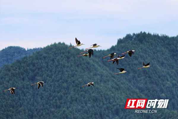 在草树青翠的山色中,一行行成群结队的候鸟,穿过山谷,或展翅高飞、或停驻观望。10月初旬,成群候鸟在炎陵县鹿原镇塘旺村的田间、湿草地逗留觅食,这些候鸟一般会停留3天左右,休息并补充食物,随后经鸟道继续南飞,到沿海地区越冬。