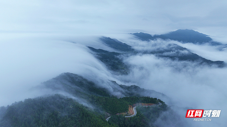 10月7日,受南下寒潮影响,位于湖南炎陵云上大院景区出现云瀑奇观。流云像水一样倾泻而下,形成“飞流直下”的磅礴气势,蔚为壮观。