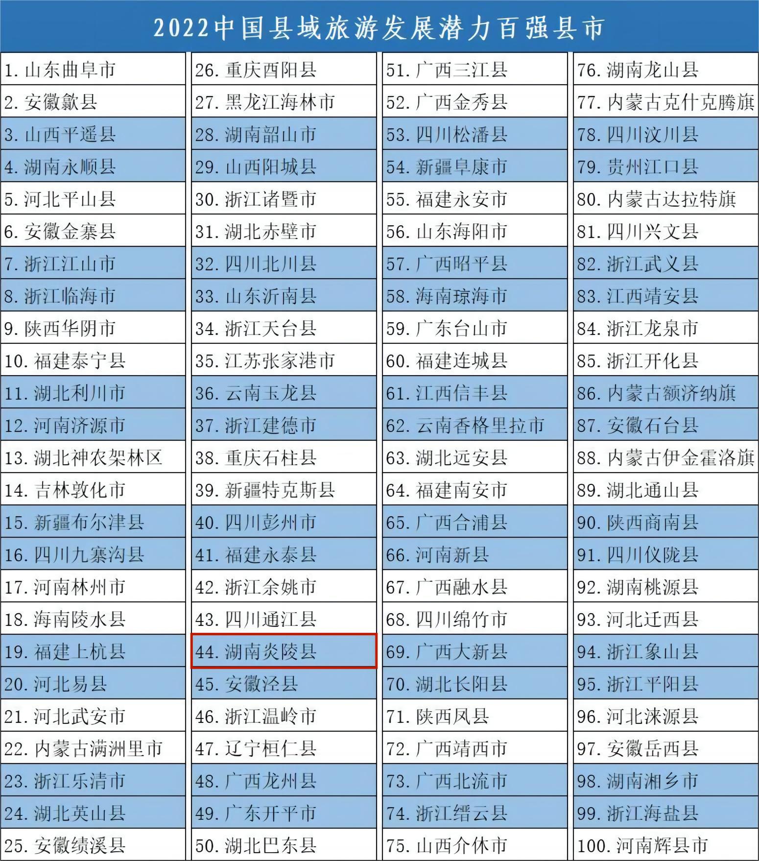 日前,竞争力智库、北京中新城市规划设计研究院等机构联合发布《中国县域旅游竞争力报告2022》,揭晓了2022(第五届)中国县域旅游发展潜力百强县市名单。湖南有6个县市入选发展潜力百强,炎陵县榜上有名。
