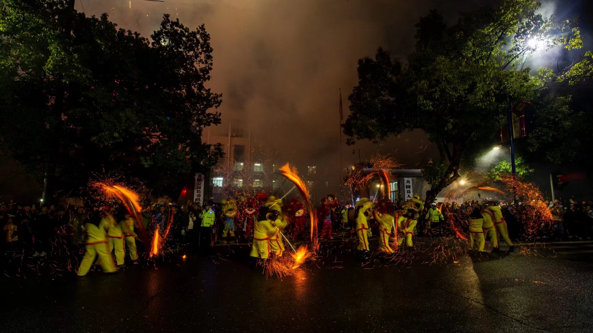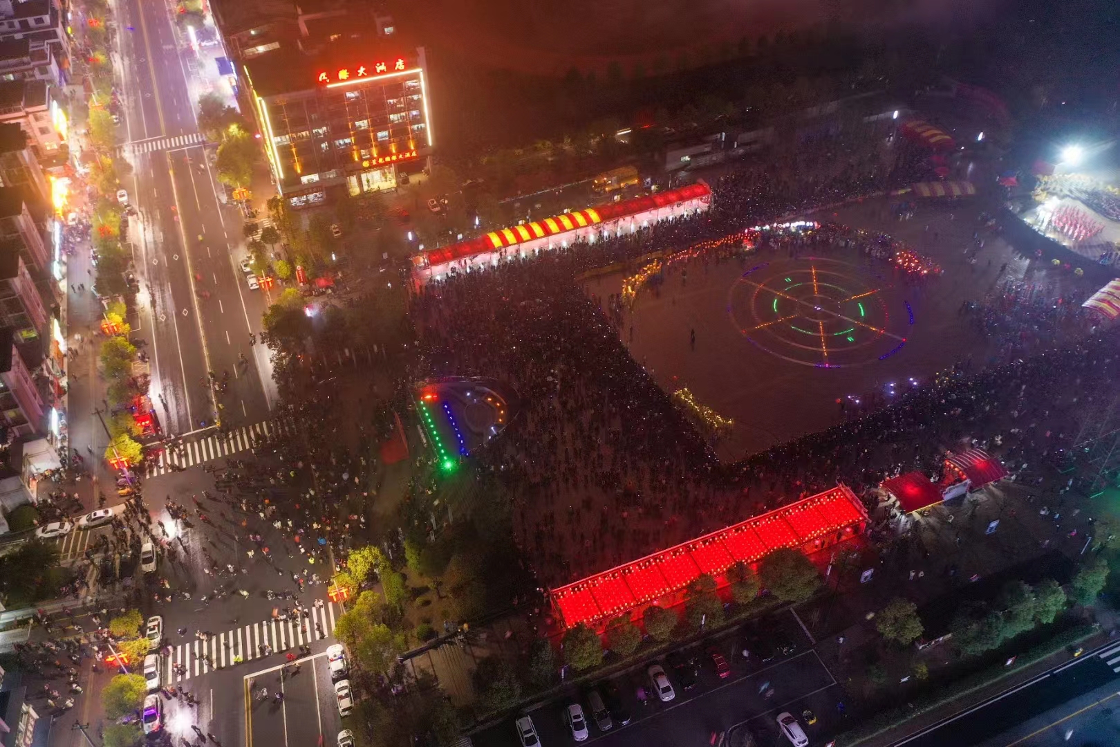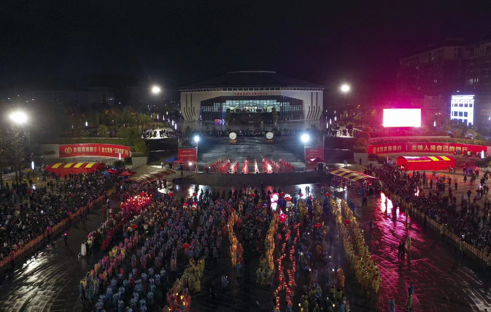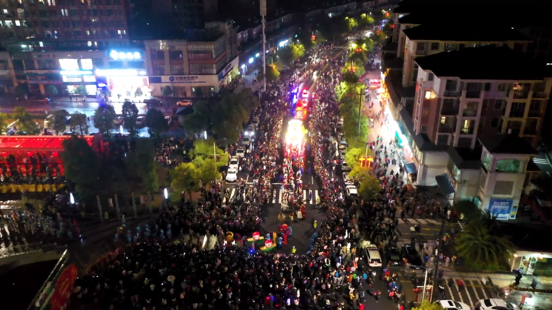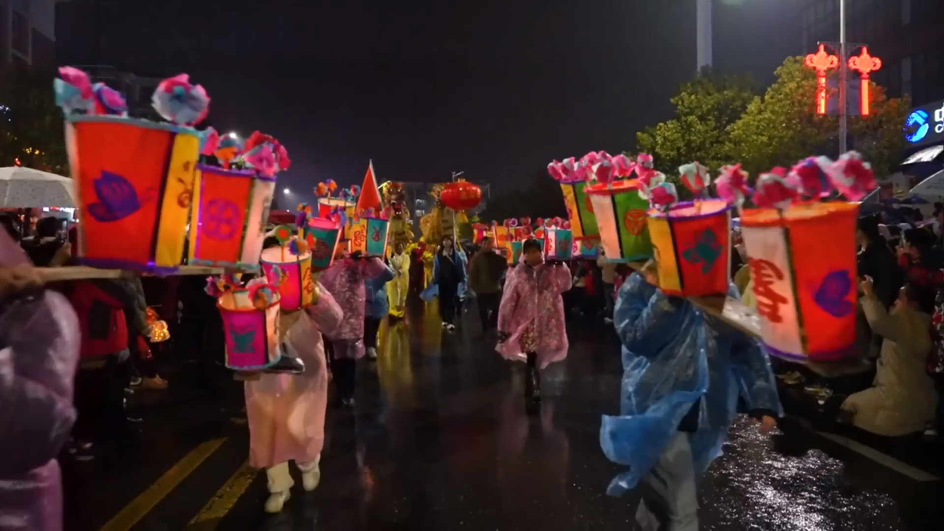 25支花灯队伍,数万人参与巡游,一路跟随巡游队伍踩街看表演,沿路商家燃放爆竹,共同欢庆元宵节。尽管天公不作美,但也阻挡不了炎陵人民的热情,民众自发打着伞在各个街口有序观看。