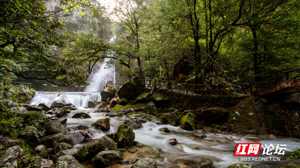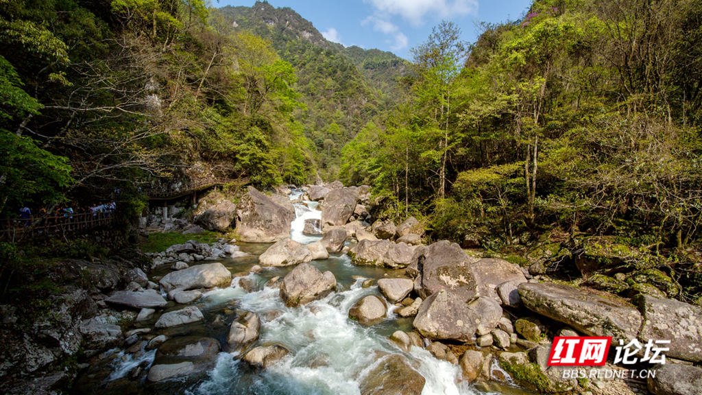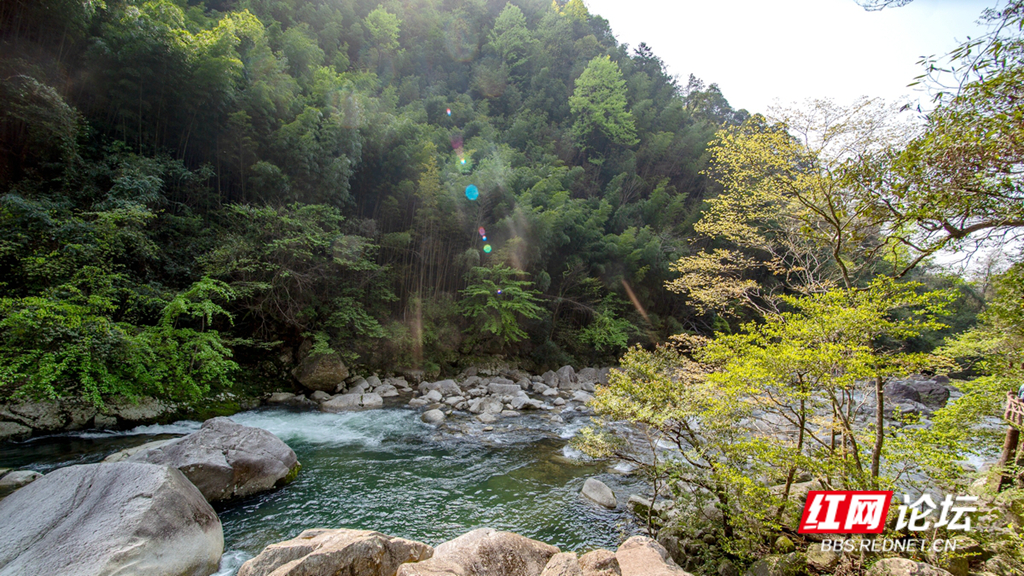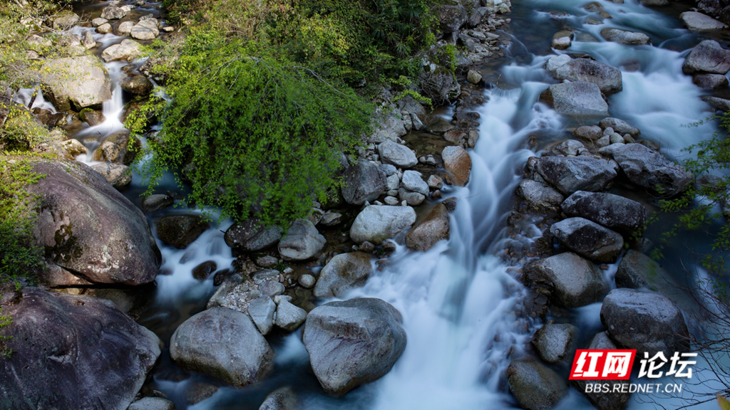 ▲图说:青山环绕,溪水潺潺。近日株洲炎陵神农谷,景色怡人。小溪在峡谷的绿意中流淌,如同少女的麻花辫一般灵动活泼。
