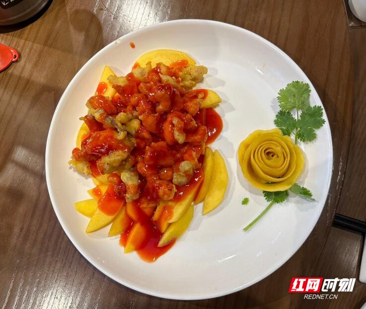随着人们生活水平的不断提高,对美食的品鉴水平也日益提升。大厨们的特色创意让炎陵黄桃走上了餐桌,“扮演”的角色不再仅限于餐后水果,而是成为“正餐名角”。其背后折射出的,是勤劳智慧的炎陵人为传承炎陵美食文化而贡献的智慧“硕果”,同时也是为黄桃等外果的销路点亮一盏“明灯”。