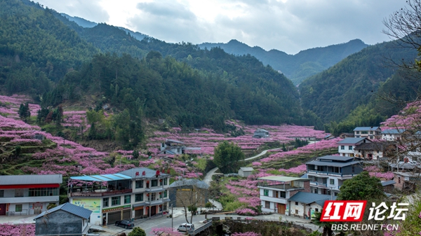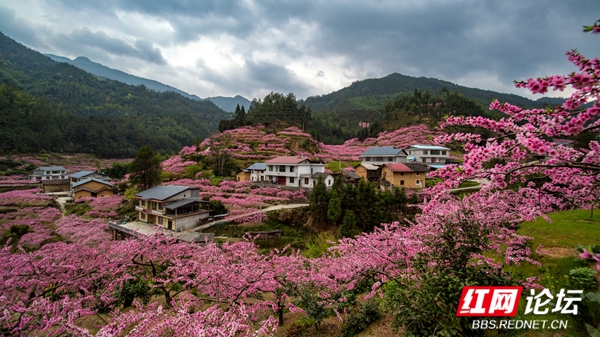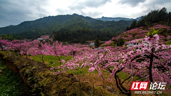 ▲图说:三月赏桃花,七月品黄桃。炎陵黄桃是炎陵人民的“脱贫果”“致富果”“振兴果”。近日,炎陵中村瑶族乡平乐村漫山遍野桃花盛开,今年又将是一个黄桃丰收年。