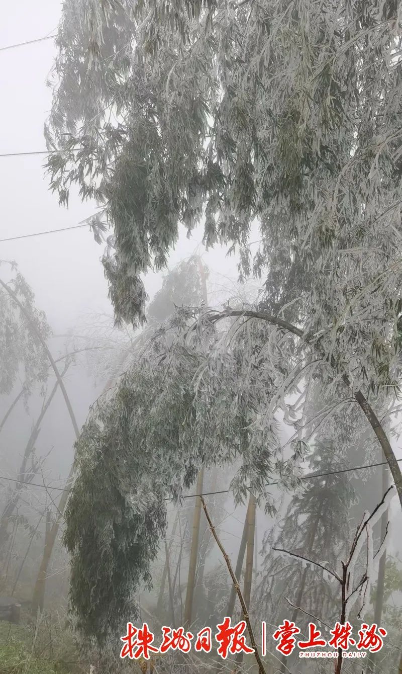 受南下冷空气的影响,12月13日凌晨开始,炎陵县大院农场一些高山上出现今冬第一场雾凇景观,一夜之间漫山遍野玉树琼花,犹如人间仙境。