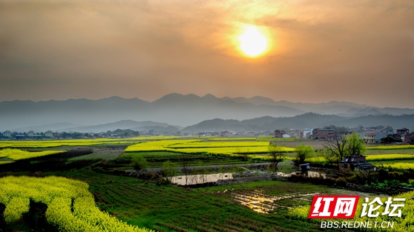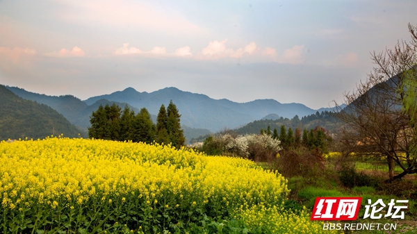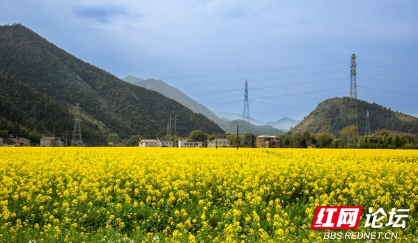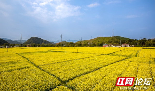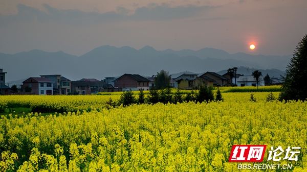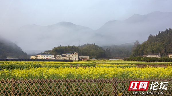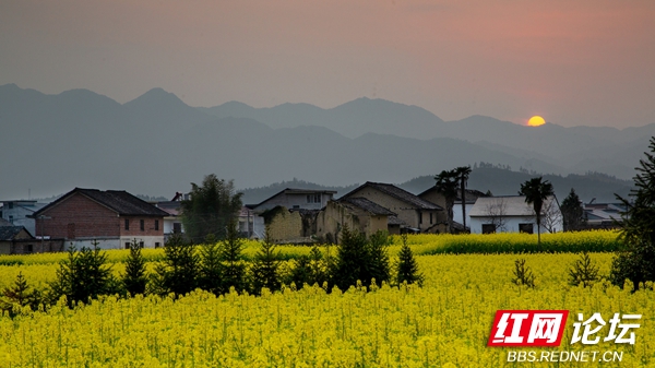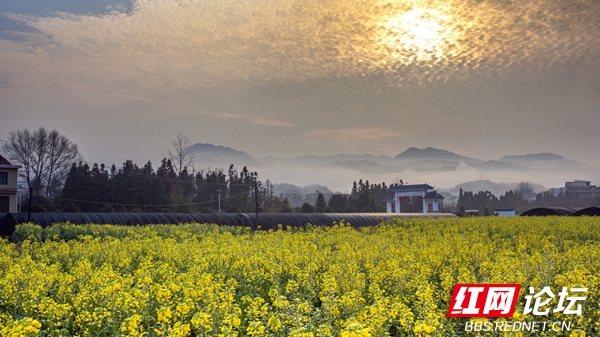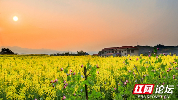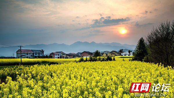 田边错落着古朴农舍,土褐色的墙壁、青灰色的瓦片,在金黄花海环绕下更显质朴。炎陵的油菜花田,正借这无边金黄,书写独属于春天的绮丽诗篇 。(图文/赵劲)