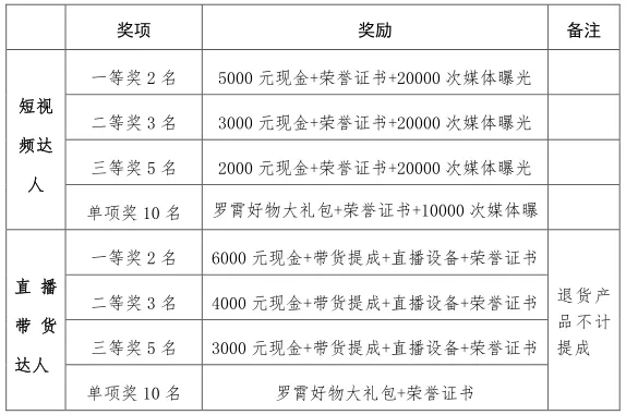 进入决赛的20组参赛选手同时出场,抽签确定直播间,在规定时间内开展带货比拼,根据带货数据,并结合评委打分,最终评选出“直播带货达人”一等奖2名、二等奖3名、三等奖5名,并评选出“最佳表现奖”“最具潜力主播奖”“最高人气主播奖”等诸多单项奖(直播带货达人评选规则详见附件3)。